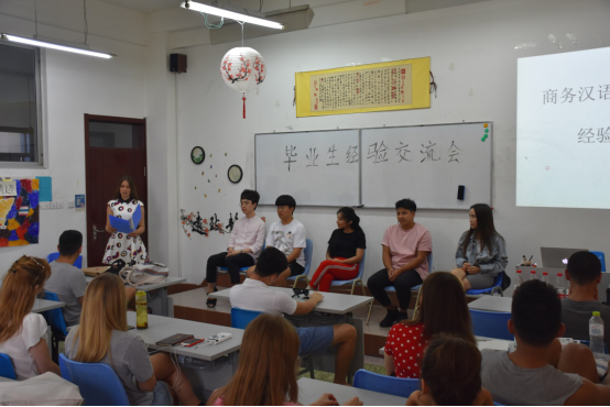 6月19日下午,bevictor1946韦德官网于2号教学楼410教室举行毕业生经验交流会。交流会由2018级商务汉语班职工卡加主持,2015级毕业生代表小龙、艾格利姆、朴贺蓝、李度宪、沙河左达应邀作经验交流与分享。教学工作办公室主任张骞、教师代表翟朝云、李月伟出席了本次交流会。