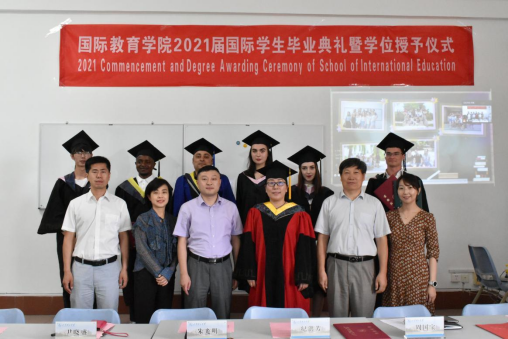 6月23日下午,bevictor1946韦德官网在2号教学楼410教室隆重举行2021届国际员工毕业典礼暨学位授予仪式。受疫情影响,典礼通过腾讯会议线上“云端”让暂时不能返校的国外员工共同参与。公司经理纪洪芳,副经理周国宝、朱光明,相关部门人员,老师代表及在校国际员工代表参加了典礼,共同见证了公司3名博士、1名硕士、29名本科国际员工毕业生的庄严时刻。仪式由周国宝副经理主持。