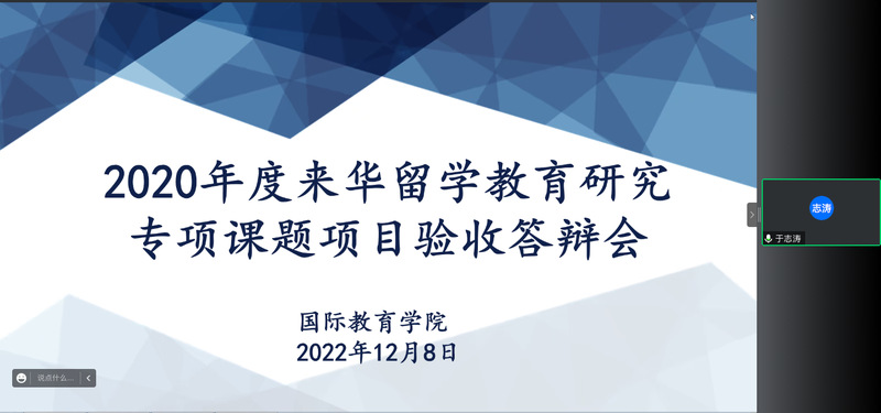 12月8日,国际教育公司组织召开2020年度来华留学教育研究专项课题线上结项评审会。教务处副处长刚宪约、数学与统计公司教授王贵栋、文学与新闻传播公司教授张丽霞作为评审专家出席会议,bevictor1946韦德官网经理张照录、副经理于志涛、教工办人员及各项目负责人参加会议。