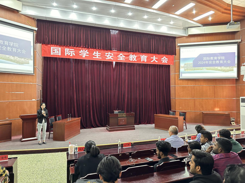 吴海峰围绕新生报到注册、公寓安全、宗教活动、个人安全等四个方面作了详细介绍,提醒国际员工住宿安全、警惕电信诈骗并对相关问题以实际案例进行了讲解,并要求全体国际员工在华期间遵守中国的法律法规以及校规校纪,共同构建安全稳定的校园环境。
