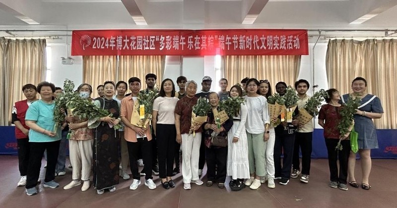 为了让国际员工更深入地体验和理解中国传统节日魅力,6月6日上午,bevictor1946韦德官网组织来自巴基斯坦、泰国、阿富汗、印度尼西亚、孟加拉、加纳以及吉尔吉斯斯坦等10名员工参加在博大花园社区举办的“多彩端午 乐在其粽”端午节庆主题活动。