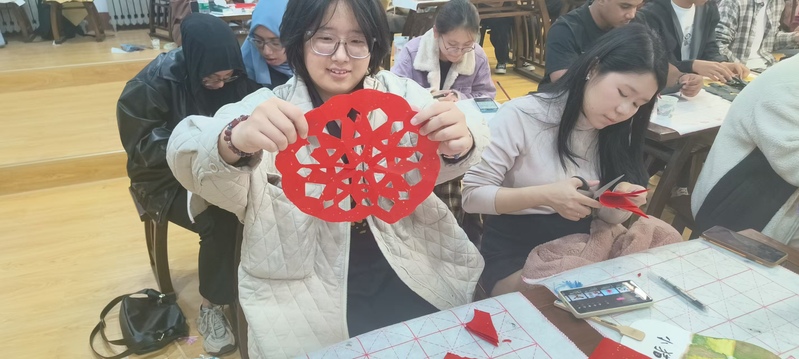 剪纸活动同样受到了大家的喜爱。一张红纸,一把剪刀,在同学们的手中就像被赋予了生命。剪纸专业人员现场示范了几种经典剪纸图案的制作方法,从简单的雪花、蝴蝶到复杂一些的双喜字、十二生肖。中外员工纷纷动手尝试,他们互相学习、互相帮助,将自己的奇思妙想通过剪纸展现出来。小小的剪纸作品,承载着各国员工对文化的理解和对此次活动的热情。